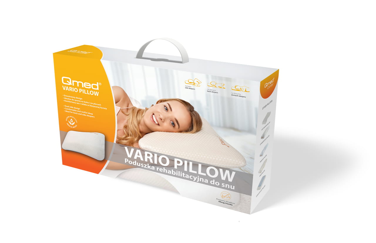 Vario Pillow poduszka do snu to dwustronna poduszka profilowana, która zapewnia wygodę zarówno podczas snu na boku, jak i na plecach. Wykonana z pianki memory foam, dostosowuje się do kształtu ciała, redukując napięcie w obrębie szyi i karku. Jej ergonomiczną konstrukcję charakteryzuje komfortowy materiał i profilowanie, które wspiera kręgosłup w czasie snu.
