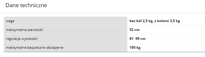 Maksymalna waga użytkownika 100 kg